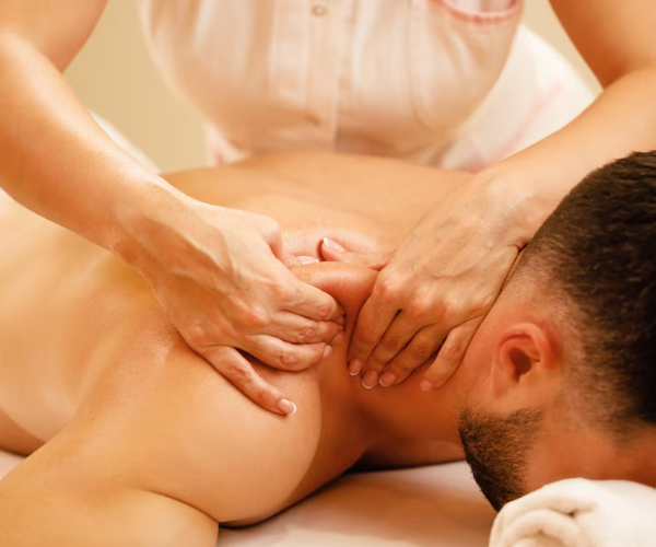 The massage therapist uses slow strokes, deep pressure, and friction to target problem areas. It's often used for chronic pain, sports injuries, and muscle strain.