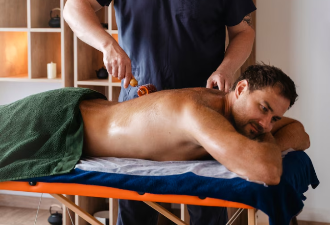 Traditional healing technique that combines massage, yoga, and stretching. It's performed without oil, and the therapist uses their hands, elbows, and feet to apply pressure.